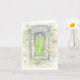 Folded greeting card with repro of original watercolor of medieval stone window interior