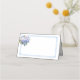 This folded name place card is shown in basic white with a lovely floral bouquet of hydrangeas and a classic dusty blue color border frame.