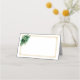 This folded name place card is shown in basic white with a lovely floral spray in colors of emerald green and gold accents.