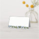 This folded name place card is shown in basic white with a lovely blue hydrangea garland photo print.