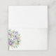 This folded name place card is shown in basic white with a lovely white lilies and purple iris art print.