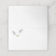 This folded name place card is shown in basic white with a wedding rings and doves print.