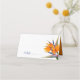 Wedding place cards, bird of paradise flowers design, to fold for standing escort, or standing table seating. White front with optional "Table" text with place for table number. Use this for escort cards to direct guests to their table. Or, remove the table text and use blank, standing cards to hand-write names of guests and place on each table. Inside is orange. Exotic flowers are bright orange and text is dark blue.