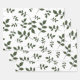 Foliage Branches with Green Leaves on White Wrapping Paper Sheets