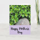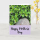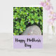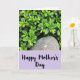 This card shows a leafy scene that feels like two close friends sharing a quiet moment ❤️. Across the top, layers of rounded leaves in deep emerald and lighter yellow-green overlap like a soft canopy, creating a cozy, sheltered setting. Small, star-shaped flowers in pale lavender peek through the greenery, and a few slim, unopened buds stand upright like little promises waiting to bloom. Near the center, a smooth, irregular stone with gentle brown-gray tones and tiny speckles rests among the plants, adding a steady, grounding touch beside the delicate petals. The bottom portion shifts into a wide pastel-purple banner that reads “Happy Mother’s Day” in black, flowing handwritten-style lettering. Simple floral accents sit in the banner’s corners, and the overall lighting is soft and diffused, giving the leaves and blossoms a tender, affectionate glow 🌼. The purple banner spans the lower third, with the black text centered and the small corner flowers lightly framing it.