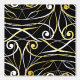 Elegant and modern silver, gold and black pattern with stylized foliage and swirls.