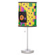The lamp looks exactly like the picture, bright and colorful. The lamp shade is plastic not what I expected, however I love it! The printing is clear and the name can easily be read.