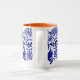 This tasteful blue and white mug, with an orange interior, was inspired by Russian and Hungarian folk art and designed by Maine based artist Katharine Woodman-Maynard.