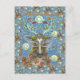 FOLK ART DEER IN AUTUMN FOREST, BIRD NEST & MOON POSTCARD