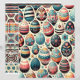 Double-sided scrapbook paper featuring lots of folk art decorated Easter eggs nestled together with coordinating pattern borders on the back to help you with your paper crafting projects. Perfect for all types of papercraft from scrapbooking to junk journaling.