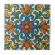Bring a cheerful burst of color to your home with this lively decorative tile. A central orange flower is surrounded by a playful medley of blue scrolls, green leaves, and golden-orange flourishes. Its symmetrical design and inviting palette make it a perfect accent for any space. This piece features a captivating central bloom in rich orange and deep blue, radiating outwards into an intricate pattern of swirling blue scrolls, vibrant green leaves, and striking golden-orange elements. The balanced symmetry and bold color contrasts create a dynamic visual impact, making it ideal for unique backsplashes, artistic accent walls, or adding an authentic, handcrafted feel to your kitchen, bathroom, or living area. This versatile tile's rich and inviting color makes it an excellent choice for adding a touch of rustic charm or simply a dose of cheerful elegance to your home decor, whether used individually or as part of a larger installation.