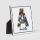 Colorful and modern tabletop plaque features monogram letter A with folk art style flowers on dark background. Customize with name in a modern script.