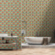 Folk Art Garden Wallpaper: "Infuse your home with the whimsical charm of our Folk Art Garden Wallpaper. This design showcases a delightful and stylized floral motif, bringing a touch of handcrafted artistry and a cheerful, inviting atmosphere to your walls."