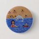 Folk Art Lady Cat Beach Ocean Dolphin Swimming Pinback Button