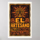 Folk Art Poster Sun Face Bold Block Print in Orange and Black 1