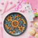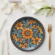 Decorative paper plate featuring a traditional folk art floral design in yellow, rust, navy, and blue tones on a dark background. Inspired by European folk pottery, the symmetrical pattern of flowers and scrolls radiates from a central medallion. Printed with detailed shading to mimic hand-painted ceramic, this plate creates the illusion of real pottery—perfect for festive gatherings with a vintage flair.