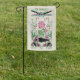 Flag bracket is super easy to assemble. There is a prong fork that goes into the ground. I dug a shallow hole to bury the prongs and still had enough height. Reinforced stitching on for the flag opening. Colors are true to the website. Mona Lisa's sign with the text is easy to read, the text is clear and not blurry.