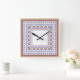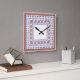 A pretty Square Wall Clock, with a border of Folk Art Style Hearts and Flowers on a white background, which you can easily change if you wish, using the 'dropper' icon. Part of the Posh & Painterly 'Folk Heart' collection.