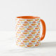 This folk art design features a pattern of orange, yellow and teal swimming fish.