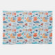 This folk art design features a cute blue and orange Scandinavian style woodland animal pattern.