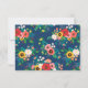 Floral RSVP card in blue and white, featuring a charming flower arrangement in gorgeous colors. Meal choices, and modern fonts. The back has a matching floral pattern in a folk-inspired style.