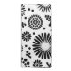 This beautiful, black and white pattern features stylized black sunflowers, folk-inspired flowers, suns and intricate botanical details on a white background. The monochrome design is both elegant and modern, combining Scandinavian simplicity with rich boho chic detail. It is a striking floral print that offers a sophisticated graphic look.