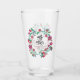 Elegant folk floral wedding drinking glass featuring colorful rustic flower wreath. Perfect for weddings, bridal showers, engagement parties, and personalized drinkware. Beautiful keepsake glass for guests. Original artwork by Caroline Bonne Müller