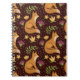 A charming pattern of seated orange foxes surrounded by yellow and purple flowers, green leaves, and dotted accents on a rich burgundy background.