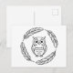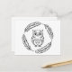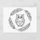 Folk Owl Line Art Surrounded by Feathers Postcard