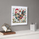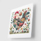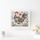 Folk Patchwork Rooster with Floral Accents Square Wall Clock