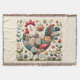 Folk Patchwork Rooster with Floral Accents Throw Blanket