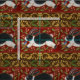 Get this modern piece of artwork today with a brown and red background. This piece of art contains a black and white rabbit which appears to be running. The details in this image are very sharp and vivid. It's a contemporary art piece that will be perfect for any type of folk theme you are trying to go for.