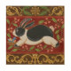Get this modern piece of artwork today with a brown and red background. This piece of art contains a black and white rabbit which appears to be running. The details in this image are very sharp and vivid. It's a contemporary art piece that will be perfect for any type of folk theme you are trying to go for.