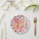 This design inspired by folk art for a paper dish evokes a sense of joy and warmth, perfect for theme parties. The main colors of the design are peach and pink, creating a warm and festive palette
