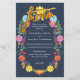 This stunning Fiesta themed wedding invitation can also be used for other events including fiesta bridal or couples shower, fiesta engagement, rehearsal dinner, fiesta birthday, fiesta retirement and more. Just edit the text as needed. It can be sued as a bilingual invitation, with text fields both sides for Mexican or Spanish themed events. Great budget value for a quality design! Features pretty folk art style flowers. Esta impresionante invitación de boda temática de Fiesta también se puede utilizar para otros eventos, como fiesta nupcial o despedida de soltera, fiesta de compromiso, cena de ensayo, fiesta de cumpleaños, fiesta de jubilación y más. Simplemente edite el texto según sea necesario. Se puede solicitar como invitación bilingüe, con campos de texto en ambos lados para eventos temáticos mexicanos o españoles. ¡Gran valor económico para un diseño de calidad! Cuenta con bonitas flores de estilo de arte popular.