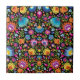 Folklore flowers Wycinanki black Ceramic Tile