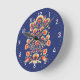 💙💛🧡Folklore with yellow flowers and birds Round Clock