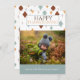 Folk art style leafy pattern, Thanksgiving Photo Card. Customize text font style, color and size.