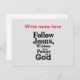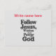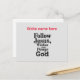 Follow Jesus Inspirational LIfequote Black Text in grey Background Personalized Greeting Postcard design for the dreamer, and believer in us - your self, family, friends, and loved ones. Perfect gift for birthday, anniversary, Christmas, Thanksgiving, Back to School, or any special occasion and even just for every day to show your love and share the love of Christ.