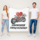 A fun and vibrant cartoon illustration featuring a red heart character driving a motorcycle with a cool brain character as a passenger. This design perfectly balances emotion and logic with the humorous quote: 'Follow your heart, but take your brain with you.' Ideal for fans of clever puns and motivational art."