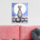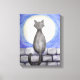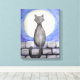 Original is a watercolor pencil drawing on watercolor paper of a black cat sitting on a stone wall; staring at a full moon.