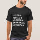 My 11 yo wore adult XL (5’7” 165#). The 8yo is small framed. She wore adult small and tied it in the back. Grandma wore adult large with long sleeve shirt underneath. Tall girl adult medium. Dark haired male adult large. Good quality dark Heather gray, Gildan brand shirt. -it was next up from basic choice and cost about $20 per shirt. Not too thick or thin. Washed and dried well, no major shrinkage. Not see-through. Can wear a bra under it fine. Screen print is just as shown and well done, front and back.