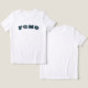 FOMO - T-Shirt Design for Trendsetters and Fashion Enthusiasts. Customizable black color print font with customizable blue accent.