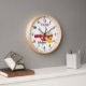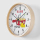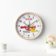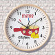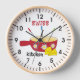 A fun wall clock featuring a red fondue pot with edelweiss and a couple of pieces of cheese . The text reads "Swiss kitchen" , but you can replace it with your own .