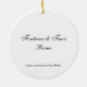 Lightweight, smooth, pure white ornament with nice sheen. Perfect size to be seen from across the room ... and to attract closer inspection! Price was great for ordering enough for the whole family! Clear, bold black design just as requested. Matches the order exactly. Just so nice!