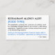 Food Allergy Restaurant & ICE Card