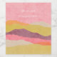 A textured abstract landscape created with layered paper cutout effects in warm, earthy hues. The composition features rolling hills in shades of pink, mustard yellow, deep burgundy, and soft beige, evoking a dreamy sunset over a desert or mountainous terrain.