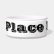 This humorous pet bowl says "Place Food Here" in black text that you can customize
