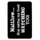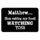 Do you find it annoying when your room-mate or family member keeps eating your food or drink? It happens a lot, people see something good in the communal fridge and, well....they just can't help themselves, and there goes the pie your mom sent you as a special treat! Here's the magnet for you....you can personalize it with the name of the suspect, and give him/her the hint in a not so subtle way (let's face it subtlety is lost on thieves!) Humor takes the sting out of it a little though! The magnet is in black, you can customize the color, but I'll be adding more colors soon. All the text is customizable, states "Matthew...stop eating my food! Watching you!" The word "watching" is in a cute font with small eyeballs on top of the letters to ram the point home!