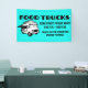 Great bold Food Trucks advertising banner. Banner is perfect for letting the community know to come out and support your Food Truck event. Design features a white and black food truck. Great for marketing your food truck or food truck event. Great for schools and organizations with Food Truck events.